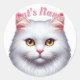 Hübsche weiße, langhaarige Katze ・ Personalisiert Runder Aufkleber