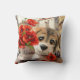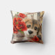 Hübsche Welpen- und Mohnblüten-Blume Kissen