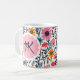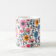 Rosa, orangefarbene, blaue und gelbe Blumen in einem skurrilen volkstümlichen Stil mit Monogramm Kaffeetasse.