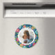 Feiern Sie mit diesem runden Fotomagneten und dem skurrilen, marineblauen, malerisch-wilden Blume-Musterrahmen mit bearbeitbarem Text, um sich ein besonderes Ereignis oder eine Person zu merken.