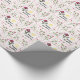 Papier mit einem sich wiederholenden Muster umhüllen. In einem quadratischen Rahmen mit rosa Rahmen steht "Happy Birthday", geschrieben in einem trendigen Schriftart mit einer gelben Sonne über dem Haus und einer hübschen rosa Blume. Die Kulisse ist ein nahtloses Muster mit handgezeichneten, rosa Wildblumen mit langen grünen Stielen und Blätter auf einem eggshell weißen Hintergrund. Auch rosa Kreise und Zierleisten schmücken das Design. Whimsisches und hübsches Blumendesign.