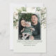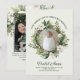 Diese Weihnachtskarte mit Geburtsanzeige und Babyfoto ist perfekt für diejenigen, die ihren fröhlichsten kleinen Weihnachtswunder ihren Freunden und Familie in dieser Saison vorstellen! Eine traditionelle Geburtsanzeige mit Ihrer jährlichen Weihnachtskarte zu kombinieren, ist eine lustige Möglichkeit, sicherzustellen, dass Ihre Karte in diesem Jahr heraussticht! Die Vorderseite zeigt einen schönen, gemalten Kranz mit Wintergrün und eleganten weißen Blumen, der ein Foto Ihres neuesten Familienmitglieds umrahmt, zusammen mit leicht auszufüllenden Vorlagen für die Geburtsdaten Ihres Babys! Die Rückseite zeigt eine passende Winterlaubmalerei hinter einer Fotovorlage, die perfekt ist, um Ihre neue Familie zu präsentieren! Schreiben Sie eine kurze Nachricht mit guten Wünschen, lassen Sie es so wie es ist oder fügen Sie Ihren Familiennamen hinzu für eine perfekte Weihnachtsgrüße!