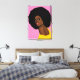 HÜBSCHER BLACK LADY AFRO DRUCKER AUF STRETCHIERTER LEINWANDDRUCK