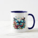 Hübscher, blauer und rosa Schmetterling und Blume personalisierte Kaffeetasse.