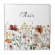 Vorstellung unserer Hübschen Floral Watercolor Wildblume Garden Keramik Fliesen. Mit Aquarellbildern von Blume und Texten, die im eleganten Boho-Stil personalisiert werden können. Geeignet als Geschenk für Naturliebhaber.