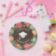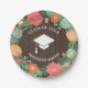 Rustikaler BlumenpapierTeller für eine Abschlussfeier. Dieser hübsche PapierTeller kennzeichnet einen Blume Wreath gegen einen hölzernen Kornhintergrund. Die Blumen sind korallenrotes Rosa, warmes Gelb, Minzengrün und Orange. Innerhalb des Blumenwreath eine weiße Abschlusskappe. Personifizieren Sie den PapierTeller mit dem Jahr und dem Namen des Absolvent.