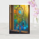 Hübscher, blauer und roter Träumer, der in einem Fenster hängt. Serene Kunst leere Karte.
