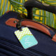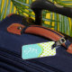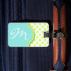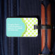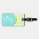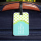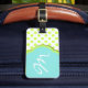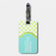 Stilvoller Chartreuse und Aquamarine-Gepäckanhänger, mit einem Tupfenmuster.  Ein dekorativer Textbereich, auf der linken Seite des Umbaus, hat weißen kundenspezifischen Text, auf der Front und Rückseite, bereiten vor, um zu personifizieren.  Groß für Gepäck und mehr.