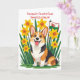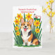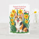 Hübscher Corgi-Hund zwischen Narzissen unterstützt Karte