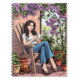Hübscher Dame Drinking Coffee Relaxen im Freien Notizblock