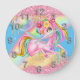Eine bezaubernde und niedliche Illustration eines wunderschönen Pastellrosa, ein Einhornpony mit hübschen rosa, gelben und aquamarinen blauen langen Haaren. Sie sitzt auf magischem Staub und ist von einem glitzernden Imitat mit goldfarbenem Glitzer gerahmt, der einen hellen Regenbogen darüber hat. Der himmelblaue Hintergrund kann in eine beliebige Farbe geändert werden. Dieses bezaubernde Ambiente eignet sich ideal für kleine Mädchen zum Geburtstag oder als Baby-Duschgeschenk für eine Mama.