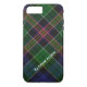 Stilvolles iPhone 7 Plus Handy Gehäuse in der traditionellen Allison Clan's hübschen bunten schottischen Tartan kariert, auf der Diagonal gelegt. Weißer Text, der diagonal läuft, in der Nähe der Unterseite, ist bereit, zu personalisieren. Stilvoll und großartig, um Ihr Smartphone zu schützen, und macht eine tolle Geschenkidee.
