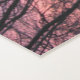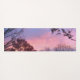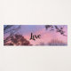 Hübscher Sonnenuntergang mit rosa, blauen, gelben Himmel von den Sonnenstrahlen über den Bäumen auf der Vorderseite und auf der Rückseite. Liebe ist in schwarzem Text geschrieben. Behalt, lösche oder füge deinen eigenen hinzu. Original Fotografie © TamiraZDesign.