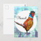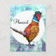 Herr Pheasant eilt durch die Geschäfte. Handgezeichnet Aquarellbild. Anpassbarer Text.