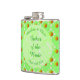 Dieser phantastische angesagte Kolben ist für den Vater der Braut. Das Design zeichnet sich durch ein Muster hübscher, blassrosa Apfelblüten-Blume aus. Sie sind in 2 verschiedenen Rosatönen gehalten und alle haben eine gelbe Mitte. Sie eignen sich ideal für eine Frühjahrsheirat und sind mit Äpfeln vermischt. Jeder Apfel ist grün, auf einer Seite rot und auf der anderen ein kleiner brauner Stiel. Es gibt einen hellgrünen Kreis mit weißen Marmormustern, der anpassbaren Text enthält, sodass Sie alle wichtigen Details aufnehmen können.
