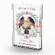 Eleganter, rosa Blumenkranz, ein beliebter Hochzeitsblock mit Foto.