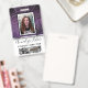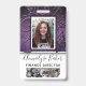 Imitate violett lila und schwarze Glitzer Glitzern köstlich hinter einer Fotovorlage mit Schwarz-Weiß-Rahmen. Aktualisieren Sie einfach den Namen und den beruflichen Jobtitel für jedes benutzerdefinierte Abzeichen. Es gibt auch Platz für ein Firmenlogo - löschen, um leer verlassen. Backside verfügt über mehr Imitate Glitzer und eine Bildvorlage perfekt für Mitarbeiter Bar-Codes. Erhältlich in vielen anderen Stilen und Farben.