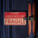 Hellroter und brauner Griff mit Vorsicht, zerbrechliches Zeichen