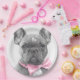 Adortable französische Bulldogge mit rosa Bug als Bleistifskizze
