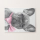 Adortable französische Bulldogge mit rosa Bug als Bleistifskizze