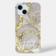 Moderne trendige irisierende Mutter aus Perlgold, Taupe beige, weißer Swirl Monogramm Name und Initialen Handy Gehäuse. Hübsches, mädchenhaftes, stilvolles funkelnd Foliendesign. Fügen Sie einfach benutzerdefinierte Initialen und Namen hinzu. Kann Design auf andere iPhone-Modelle oder Samsung übertragen, und Android-Telefongehäuse. Wenn Sie Hilfe bei der Anpassung dieses Produkts benötigen, verwenden Sie bitte den "Nachricht"-Button unten, um mich zu kontaktieren, und ich werde Ihnen gerne behilflich sein.