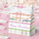 Hübsches kleines Zeltstilfavorit-Kästchen, personalisieren Sie den Text, oder Text ist abnehmbar. Ideal für Party, Hochzeitsgäste oder Firmenveranstaltungen. Kariert in Rosa, Weiß, Blau, Grüntöne und Orange mit Weiß. Designer-Gastgeschenke mit Ihrer eigenen persönlichen Nachricht.