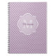 Fügen Sie einen hoch entwickelten modernen Vibe Ihrer persönlichen Art mit diesem trendy hellpurpurnen und weißen quatrefoil Musternotizbuch mit einem eleganten gerahmten Monogramm hinzu. Personifizieren Sie diesen stilvollen Entwurf, indem Sie Ihre Namens- und mit Monogramm Initiale addieren.