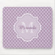 Fügen Sie Ihrem Zuhause-Büro ein modernes und elegantes Ambiente mit diesem lila und weißen Vierblattmuster-Mousepad mit elegantem gerahmtem Monogramm hinzu. Personalisieren Sie dieses stilvolle Design, indem Sie Ihren Namen und mit Monogramm Initialen hinzufügen.