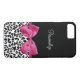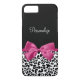 Ein trendiger schwarz-weißer Leopardenprint Barely There iPhone 6 Case mit einem lebhaften dunkelrosa Band in einem niedlichen gürtelförmigen Bogen. Personalisieren Sie diese schicke und stilvolle Tiermuster mobilen Gehäuse, indem Sie den Namen Ihrer Teenager Mädchen. Flachbild, nicht echtes Band.