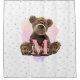 Ein hübscher und lebendiger Monogramm-Duschvorhang mit einem flauschigen Teddybär. Ein Duschvorhang für ein Kinderbad.