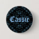 Schönes, aufwändiges Design in schwarz und blau auf einem Knopf, der "Cassie" auf ihm sagt. Sie können diesen Namen durch Ihren eigenen ersetzen.