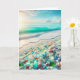 Jubiläumskarte. Schönes, farbenfrohes Meerglas an einem weißen Sandstrand mit türkisfarbenen Wellen Ozeanszene.
