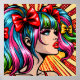 Farbenfrohe niedliche Pop Art Comic Mädchen mit Ferkeln und Bogen in ihren Haaren.