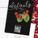 Diese elegante zweiseitige Hochzeitszimmerkarte zeigt eine Vintage botanische Abbildung von kräftigen Rothirschen mit grünen Blätter, die elegant über dem Wort "Details" in stilvoller weißer Kalligrafie hängen, alles Set vor einem schlichten schwarzen Hintergrund. Ein moderner schwarz-weißer QR-Code ermöglicht Ihnen den einfachen Zugriff auf Ihre Hochzeitswebsite oder Ihr digitales Marketing. Die Rückseite zeigt elegantes Schwarz-Rot-Skript auf einem sauberen weißen Hintergrund. Vollständig anpassbar, können Sie Text- und QR-Codes durch Ihre eigenen Daten ersetzen. Ideal für eine rustikale Hochzeit im Freien, erkunden Sie unsere Cherry Wedding Collection für passende Produkte, um Ihr Thema zu vervollständigen.