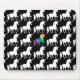 Spaß-Schwarzweiss-Regenbogen-Einhorn-Muster-Mausunterlage. Stilvolles Schwarzweiss-Einhornmuster umfaßt die Front dieses Spaß mousepad. Ein helles und buntes Regenbogen-Einhorn in Aquarell Brushstroke steht heraus in der Mitte. Roter, orange, gelber, grüner, blauer und lila Unicorn fügt ein Spritzen des Spaßes dem einfarbigen Entwurf hinzu. Herrliche, moderne und stilvolle Einhornentwürfe.