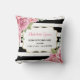 Paris-inspiriertes Throwkissen, das reizende Watercolorrosa-Rosen und schwarzen u. weißen gestreiften Hintergrund kennzeichnet