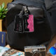 Hübscher rosa und schwarze Roseblumenchic-Bogen Gepäckanhänger
