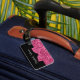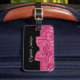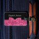Rosa und schwarzer Gepäckumbau eines Chic mit einem Blumenmuster der weiblichen und stilvollen Rose und einem girly rosa Band des heißen Rosas gebunden in einen niedlichen Bogen. Personalisiert dieser hübsche romantische rosa Blumenentwurfsfall durch das Addieren Ihres Namens. Ebenedruckbild, nicht tatsächliches Band. Ursprüngliches Kunstcopyright von ©Tracie Kaska.