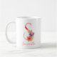 Hübscher rosa Watercolorbuchstabe "S", verschönert mit einem Blumenblumenstrauß des empfindlichen Watercolor, personalisiert mit Namen, Kaffee-Tasse.