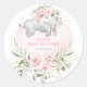 Dieser hübsche Rundaufkleber mit eleganten Rosen in Rosa, sanfter botanischer Vegetation in Grün und Gold und einem bezaubernden, schlafenden Elefanten in einem hübschen, herzförmigen Ballon. Klicken Sie auf die Schaltfläche "Weitere Anpassung", wenn Sie den Stil und die Position des Textes neu ordnen und formatieren möchten.