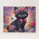 Hübscher Schwarzer-Katzen-Blumengarten Puzzle