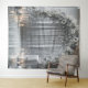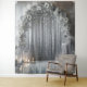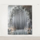 Hübscher silberner Blumenbogen mit silbernen Vorhängen, Wandteppichen, eleganten Kulissen von Fotos zum Silberjubiläum, Hochzeiten oder Veranstaltungen