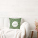 Ein hübsches Monogramm Quadratwurfkissen mit einem Baumkronen-grünen Kreismuster mit stilistischen Herzen in ihnen. Personalisieren Sie diese, indem Sie Ihren Namen und mit Monogramm Initialen in den trendigen Rahmen des Kreises hinzufügen. Teil der Treetop Hearts Bedroom Decor Summer Color Collection.