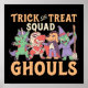 Trick oder Treat Squad Ghouls. Süße Tier Liebhaber Design für Ihr glückliches Halloween-Party. Coole und phantastische Ware für diejenigen, die Horror-Filme und Trick oder Treat auf Halloween-Liebe schauen. Das passt gut zu Ihrer spukhaften und beängstigenden Halloween-Dekoration von Jack-O-Lantern Kürbis, Geist, Schädel, Skelett, Hexen und schwarzen Katzen. Vintages Retro-Design mit niedlicher Abbildung von Zombie Einhorn, Mama T-Rex, Vampirhund und KatzenHexe.