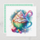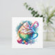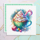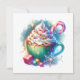 Personalisierte Weihnachtskarten. Eine hübsche ai Aquarellwiedergabe einer whimsical Tasse heiße Schokolade, bedeckt mit Peitschcreme und Sprinklen mit einem Bonbons, der aus dem Wasser ragt.