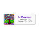 Hübscher, aber sonderbar lila, grüner, gelber und blauer Baum mit Blume für Blätter, entstanden Kunst-Rücksendeadressen-Aufkleber.