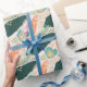 Hübsches Abstraktes Blumenmuster Aqua Green Orange Geschenkpapier