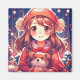 Niedliche Weihnachtsschmuck mit einem hübschen Anime-Mädchen mit Ohrmuffen zu Weihnachten mit einem Welpenhund.