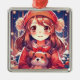 Hübsches Anime Girl mit Welpen- und Ohrmuffen Ornament Aus Metall
