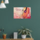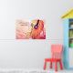 Hübsches animiertes Mädchen mit Kopfhörern in rosa Tönen auf einem Poster.